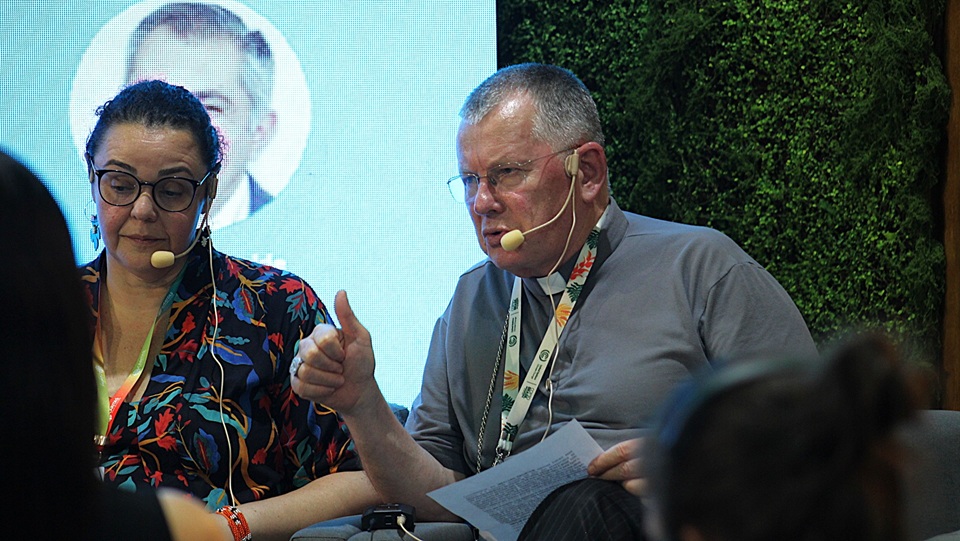 “É por isso que estamos aqui, para exortar que, juntos, como sociedade, tomemos as decisões necessárias para que seja possível a adaptação, mitigação e transição energética justas, bem como a transparência e a responsabilidade que nos cabem, tal como expusemos no documento “Um apelo pela Justiça Climática e pela Casa Comum” da Igreja Católica no Sul Global (América Latina, Ásia e África) que entregamos aos representantes das Nações Unidas, onde encorajamos a conversão ecológica, a transformação real e a resistência diante das falsas soluções”.