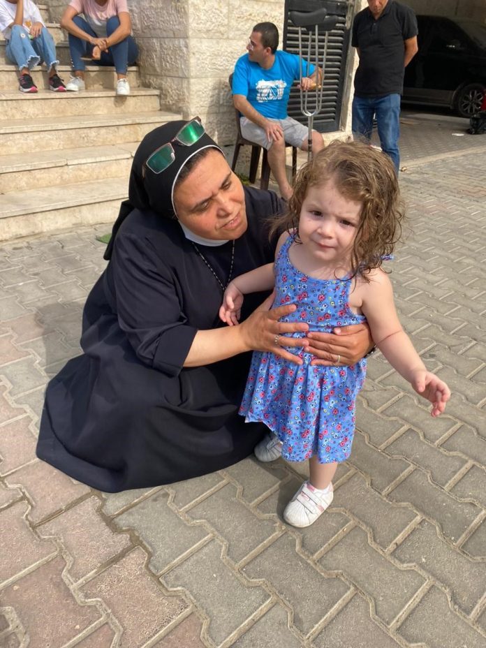 As irmãs e os funcionários estão fazendo tudo ao seu alcance para garantir que cada indivíduo receba o que necessita urgentemente, mas os recursos são limitados e a situação está piorando a cada dia, especialmente depois que os refugiados foram transferidos para a paróquia após a invasão ortodoxa grega. complexo foi atingido por uma explosão que matou 18 pessoas. Existem agora quase 700 fiéis, incluindo 100 crianças, 50 pessoas com deficiência e alguns dos que foram feridos no complexo ortodoxo grego e estão a receber tratamento médico.